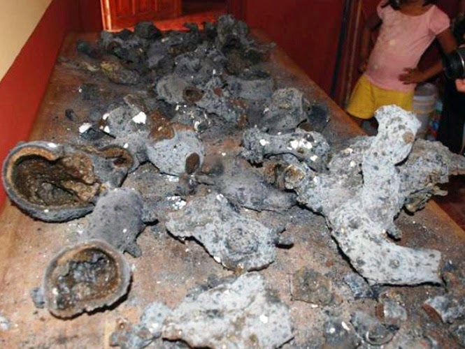 Místní obyvatelé vypátrali místo pádu. Na zemi spatřili dva dost hluboké krátery a zkamenělé ostatky.
