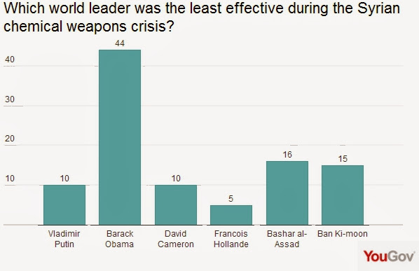 Ještě více udivující je, výsledek, když byla otázka položena opačně – kdo byl nejméně účinným vůdcem? Obama byl nejméně účinný, dokonce méně než syrský vůdce Assad: